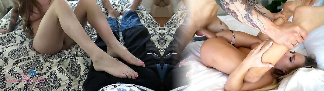 06:29A beautiful brunette jerks his tiny dick on the bed