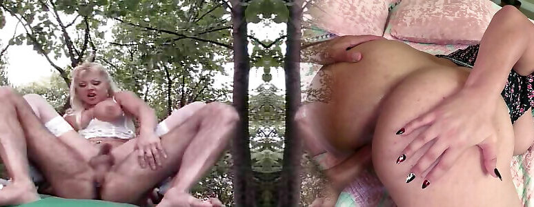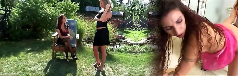 06:50Dark Haired vs. Blond. Donna Bell and Angel Pink outdoor girlgirl scene