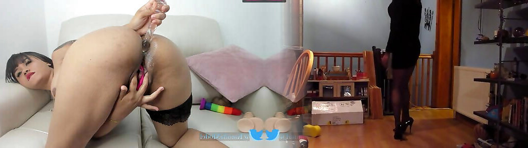 05:48femdom teasing slave, cbt, inserting dildos up his ass, butt plug, huge double dildo, ruined orgasm