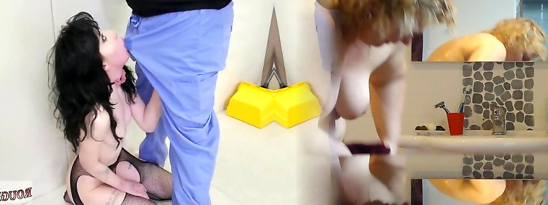 05:34Rectal dildo railing with pee drizzling in hotel