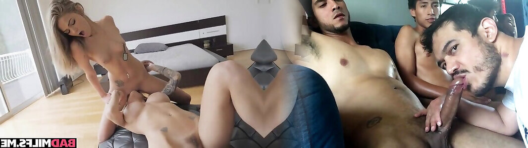 05:57Jizz-shotgun and a strapon spit roast the stellar tanned damsel