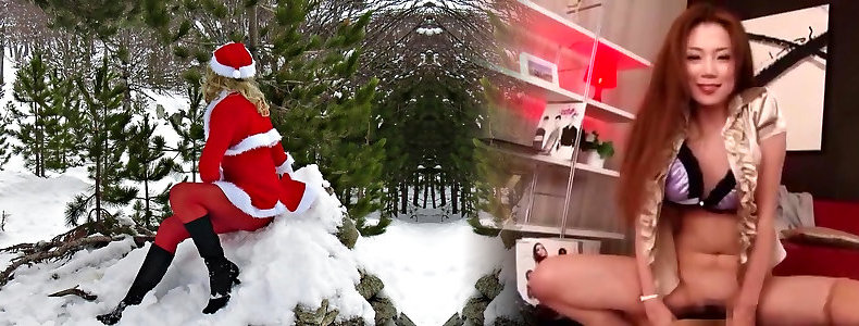 21:24Diminutive slag has her crimson stockings jizzed on for Christmas