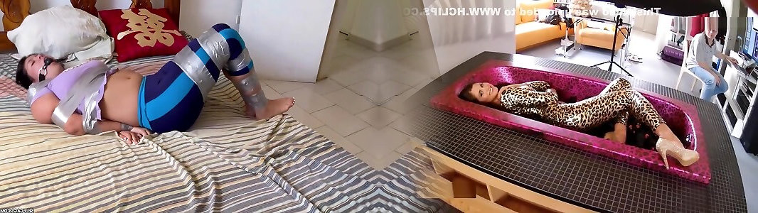 08:02boule nue aux cheveux rouxboule de ruban adhésif bâillonnée et grenouille attachée sur le lit