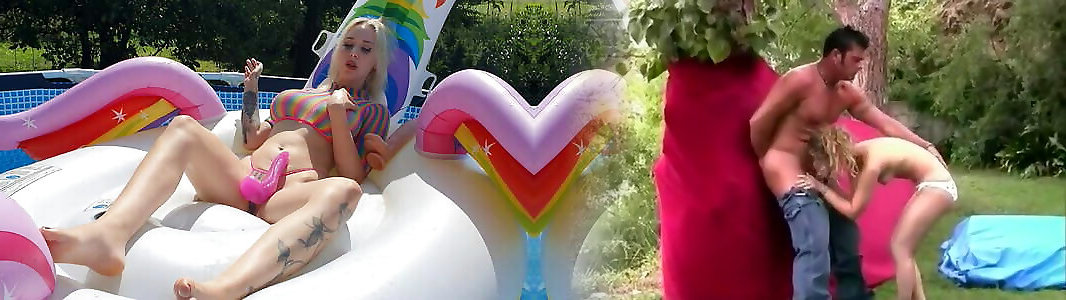 03:42ravage ma chatte dans la piscine sur la licorne & ndash; salope allemande en plein air