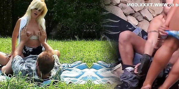 10:12une femme blonde aux gros seins suce profondément puis baise son mari à lextérieur