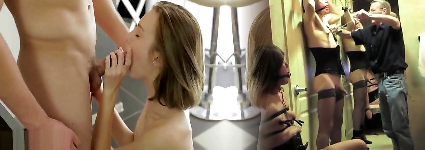 06:52salope en bas de corps en maille se fait tenir en laisse et reçoit lordre de sucer une grosse bite et de se masturber