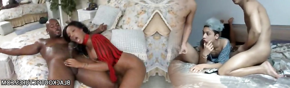 05:00caramel twist-bitch de couleur foncée rampant sur un géant stiffy de couleur foncée