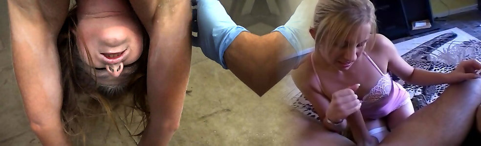 une fille aux cheveux clairs et aux gros seins en bas se fait baiser par une méga-salope
